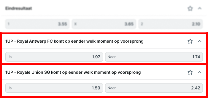 Activeer 1UP door een bet te plaatsen op "1UP - Team komt op eender welk moment op voorsprong" !